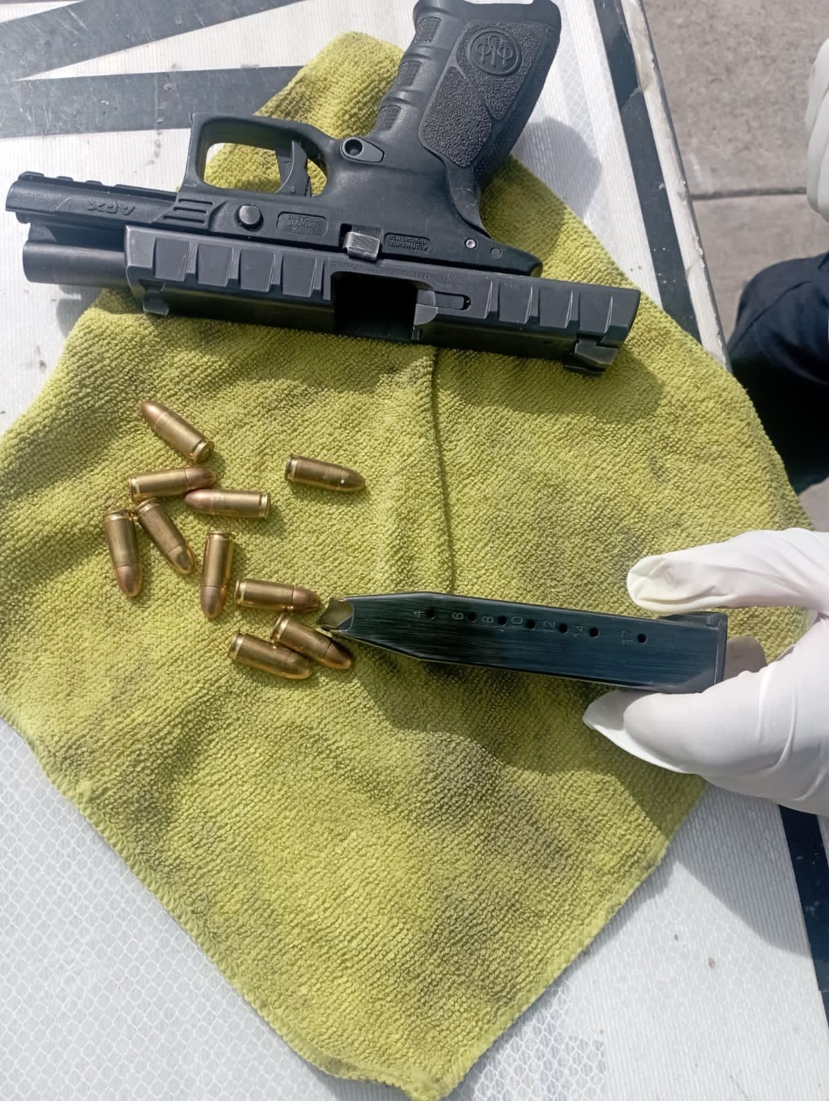 Al detener la marcha, quien se identificó como Roberto N. de 37 años de edad, continuó con una actitud de afrenta contra los oficiales, a quienes les muestra de nueva cuenta el arma de fuego, y reitera que no va a pagar ningún servicio.