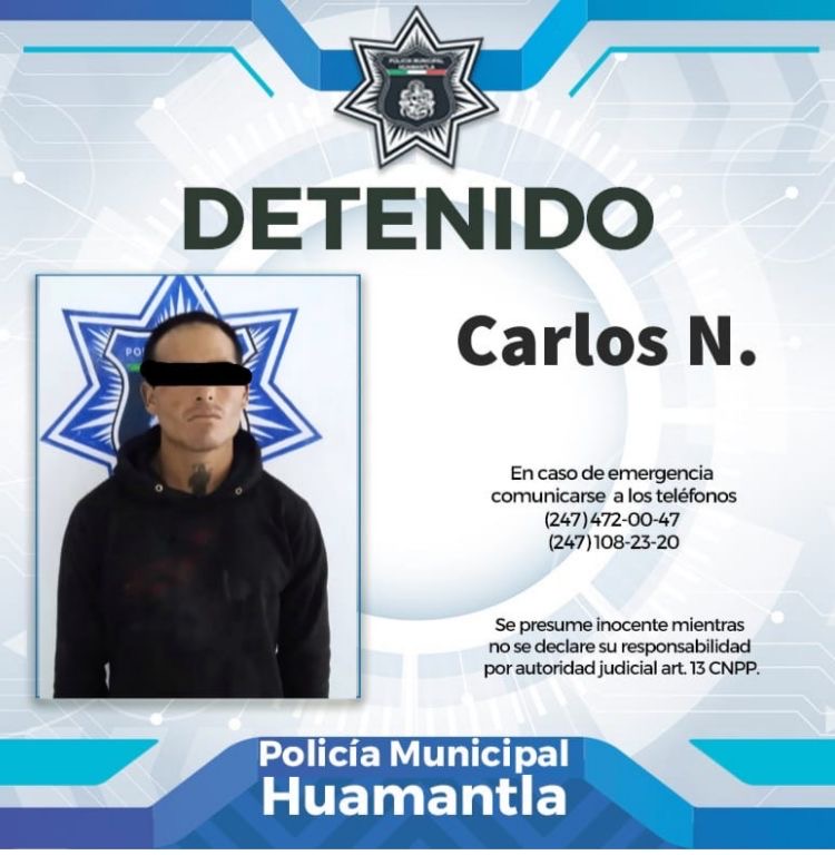 Por lo anterior, y al estar ante un hecho constitutivo de delito, Carlos N. fue detenido y trasladado con el representante social del Distrito Judicial de Sánchez Piedras del municipio de Apizaco, quien determinará su situación legal.