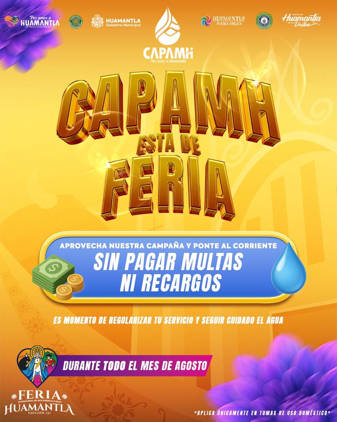 **Esta campaña estará vigente del 1 al 31 de agosto y se atenderá directamente en las oficinas de CAPAMH, ubicadas en Privada del pozo #121, Heroica Huamantla, México, en un horario de atención de 8:00 a.m. a 4:00 p.m. de lunes a viernes y sábados de 8:00 a.m. a 12:00 p.m.**