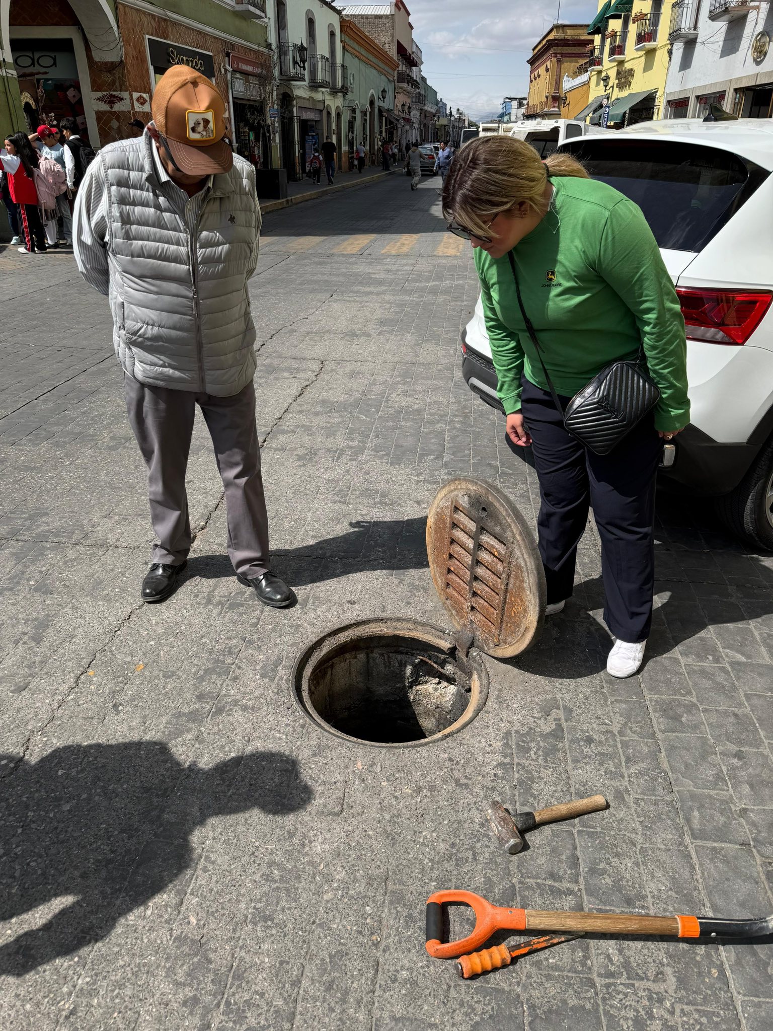 Durante la jornada, se llevaron a cabo labores de desazolve y limpieza de alcantarillas en las calles Hidalgo y Guerrero, acciones que permiten mejorar el flujo del sistema sanitario y prevenir posibles obstrucciones que afecten el servicio.