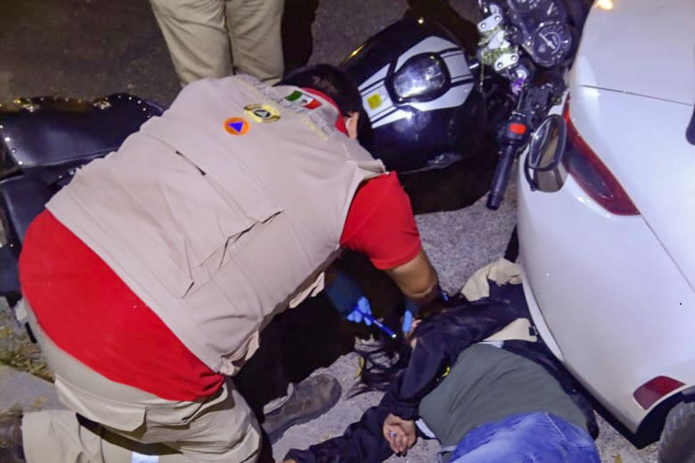 Tras una primera revisión, los paramédicos informan que la femenina de nombre Tania N., quien es vecina del barrio de San José, conducía bajo los efectos del alcohol, lo que probablemente causó que perdiera el equilibrio y derrapara, ocasionándose heridas dermoabrasivas en extremidades inferiores a la altura de la tibia.