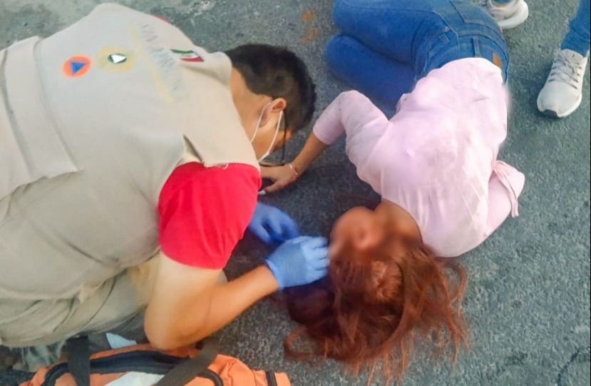 Personal de la Coordinación de Protección Civil municipal, valoraron a la joven que se encontraba sobre la cinta asfáltica, ya acompañada por su progenitora, donde dictaminaron posible fractura de clavícula derecha, por lo que era necesario trasladarla a un hospital