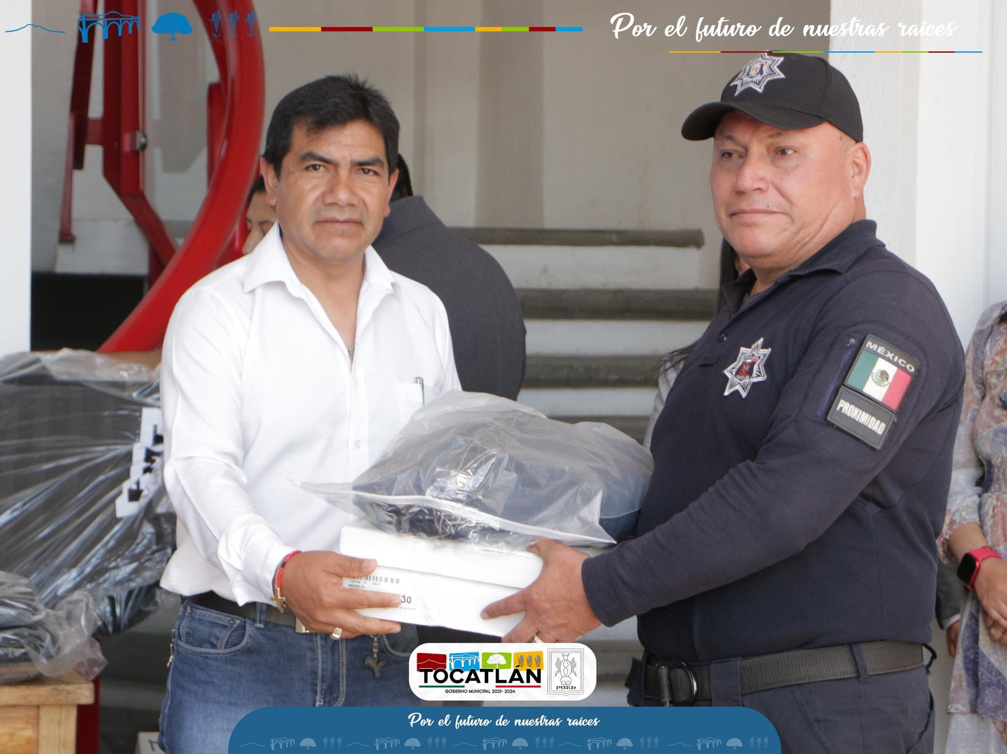 El Presidente Municipal de Tocatlán Quirino Torres Hernández, acompañado de Cabildo: realizaron la entrega de 9 uniformes tácticos, 1 de gala y 6 chalecos antibalas, todo esto con el propósito de contar con el equipo necesario para fortalecer sus funciones de nuestro elementos.